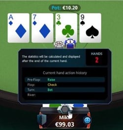 - Statistica “3Bet” – mostra la percentuale di volte in cui il giocatore ha effettuato una 3-bet (reraise su un raiser) preflop quando aveva l’opportunità.